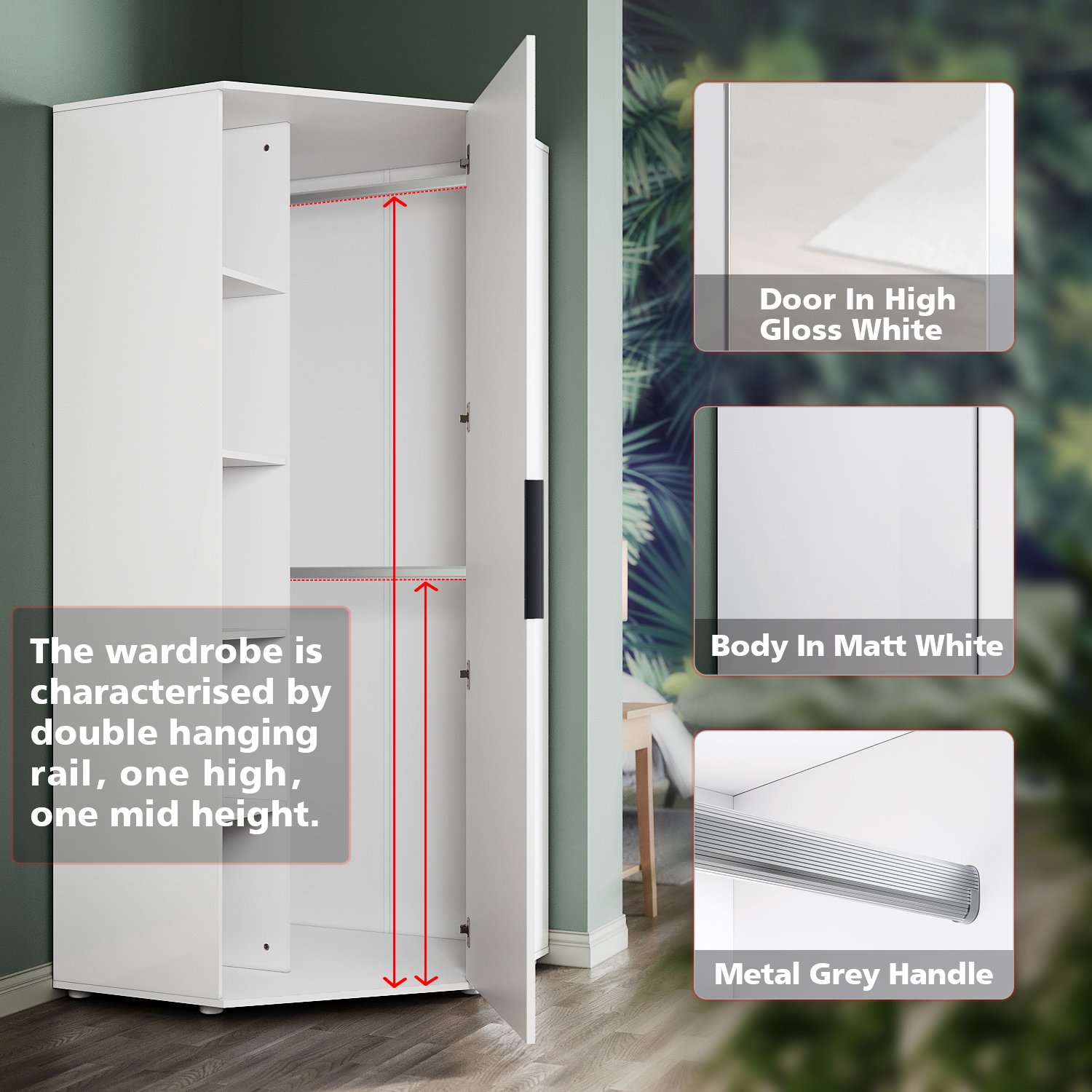 Armoire 2 portes VITO blanc penderie 80 cm avec étagères rangement maxi capacité