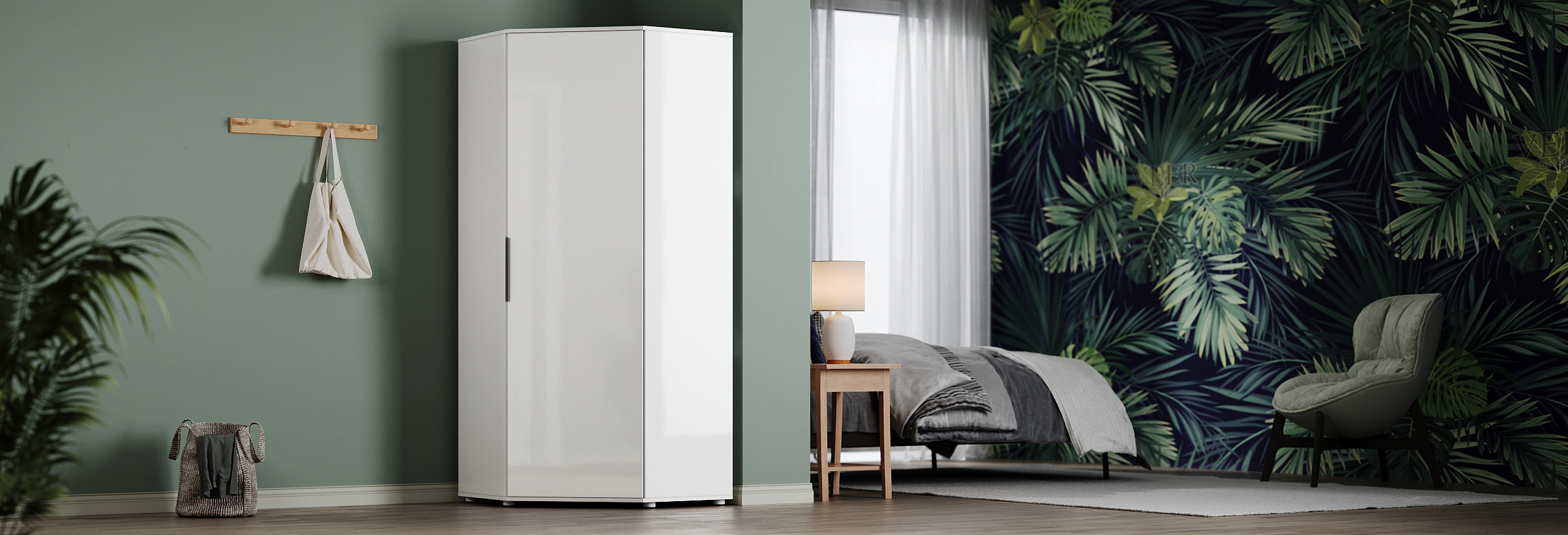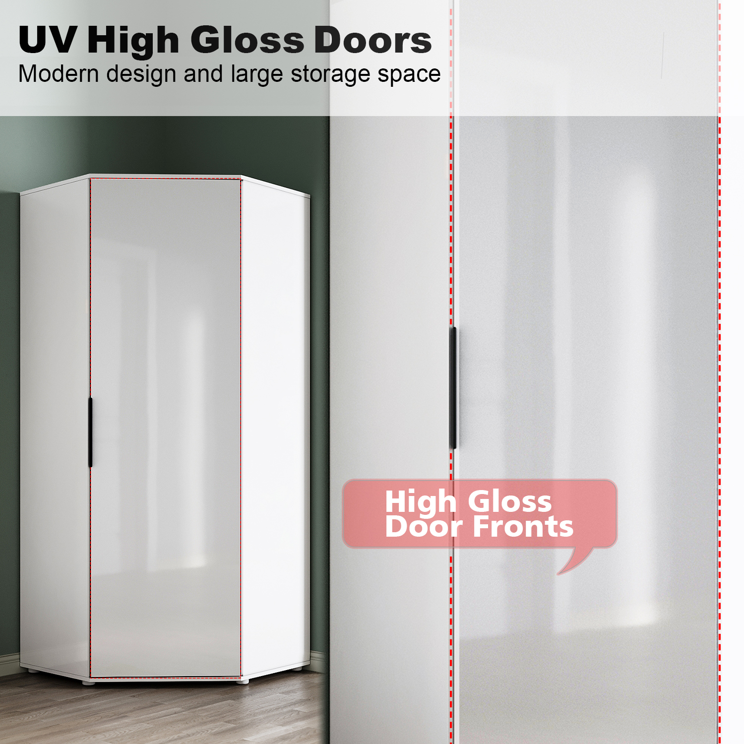 SIRHONA Armoire d'angle moderne avec rails de suspension Blanc brillant et mat Chambre à coucher Meuble de rangement